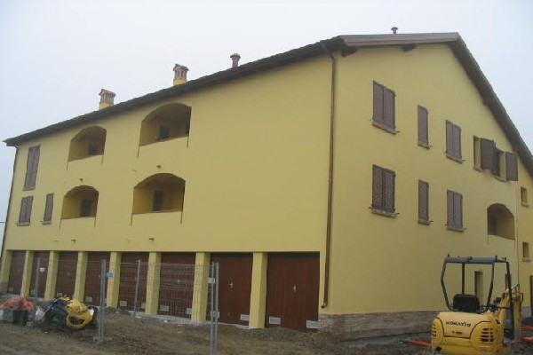 Realizzazione di corte immersa nel verde in località Villa Bagno, situata a 800 metri dalla via Emilia tra le scuole e la chiesa, costituita da n° 3 fabbricati residenziali composti da n° 8 alloggi ciascuno di varie metrature, dotata di area cortiliva a uso esclusivo e di casetta riservata a “gioco bimbi”.