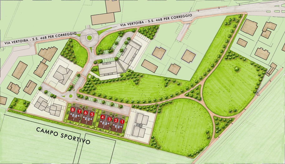 Il nostro intervento si inserisce in una posizione di sicuro interesse: poche centinaia di metri e sarete collegati con le principali arterie di comunicazione (verso la Città e verso la zona Nord/Est della provincia di Reggio Emilia) per raggiungere in breve tempo le scuole, il luogo di lavoro e di divertimento e tutti i servizi.